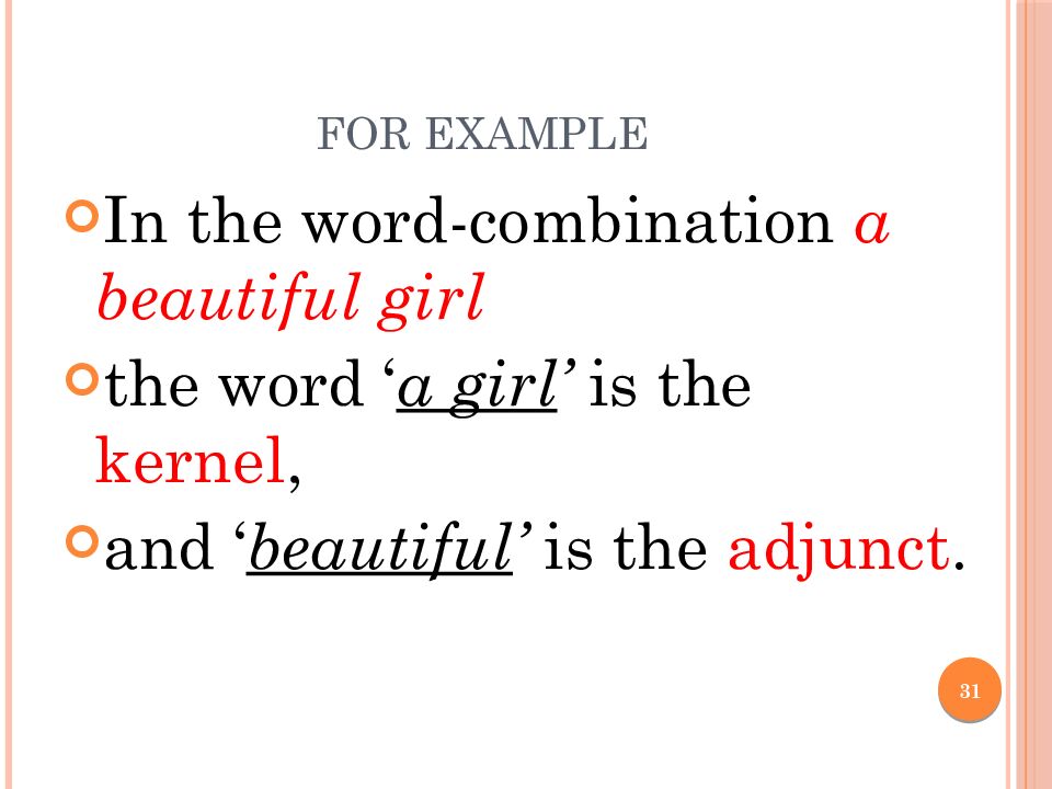 I n the word-combination a beautiful girl the word ‘ a girl ’ is the kernel, and ‘ beautiful ’ is the adjunct. 31
