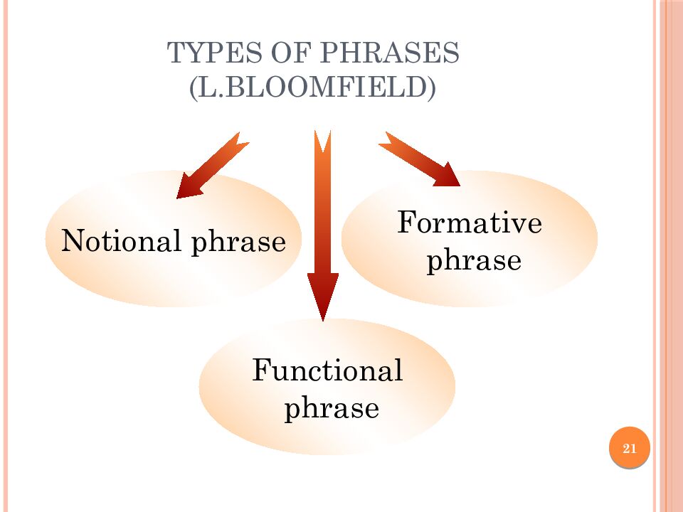 Слайд 21: Types of phrases ( L.Bloomfield )