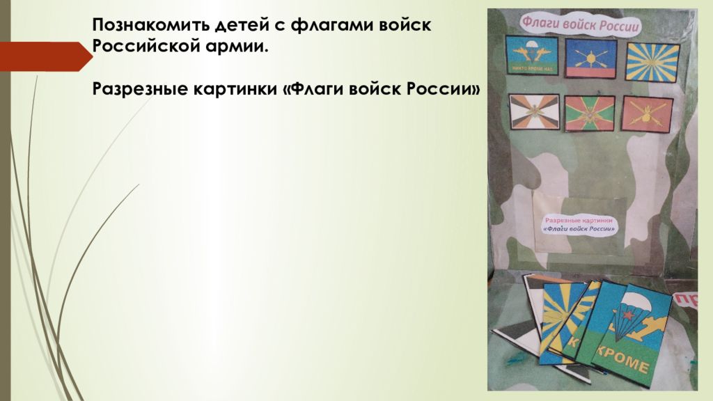 Познакомить детей с флагами войск Российской армии. Разрезные картинки «Флаги войск России»