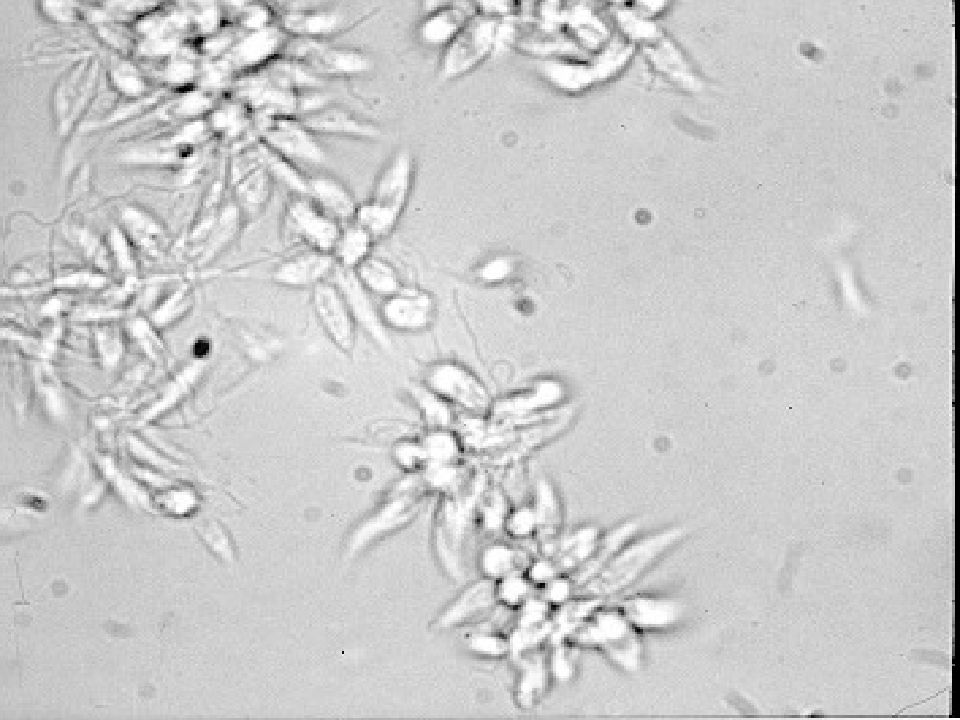 Промастиготы лейшманий Неподвижные, овальной формы амастиготы длиной 3 – 5 мкм и шириной - 3 мкм При окраске по Лейшману или Гимзе их цитоплазма окрашивается в голубой цвет, а ядро и кинетопласт – в рубиново-красный цвет Веретенообразные промастиготы, достигая в длину 10 – 20 мкм и ширину 4- 6 мкм, имеют жгутик на переднем конце, что позволяет им активно передвигаться. Культиви - руются на среде NNN