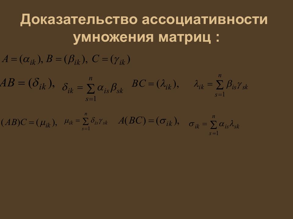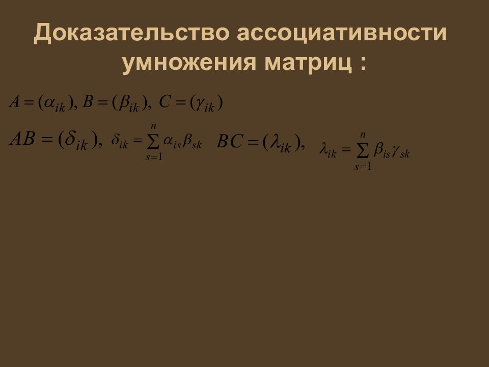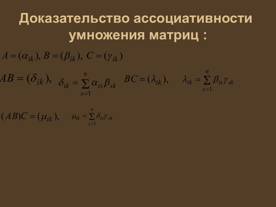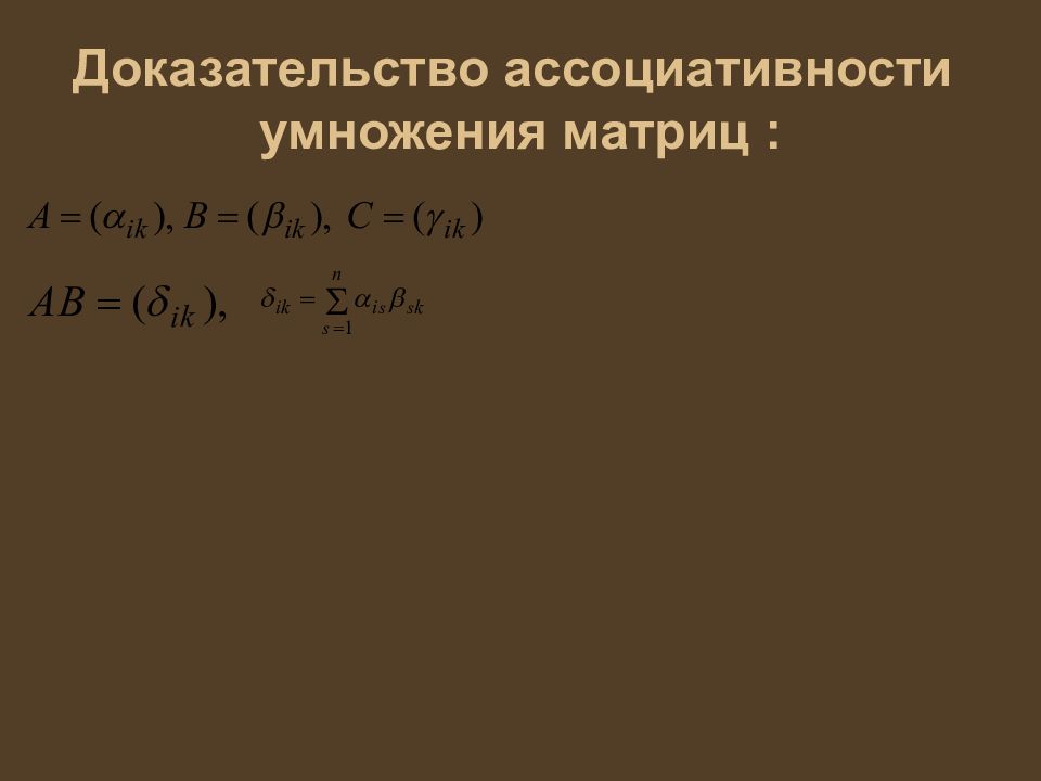 Слайд 22: Доказательство ассоциативности умножения матриц :
