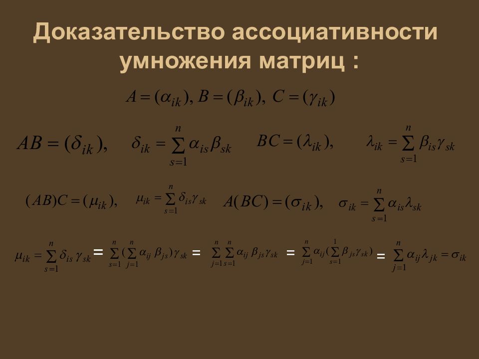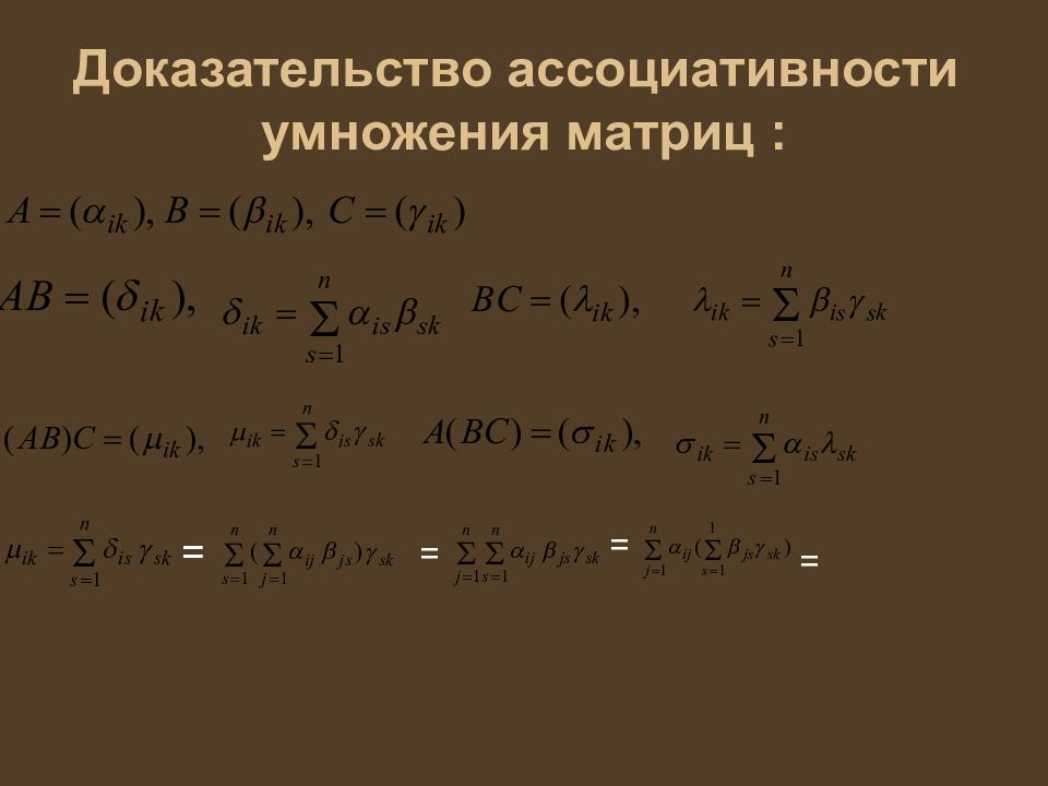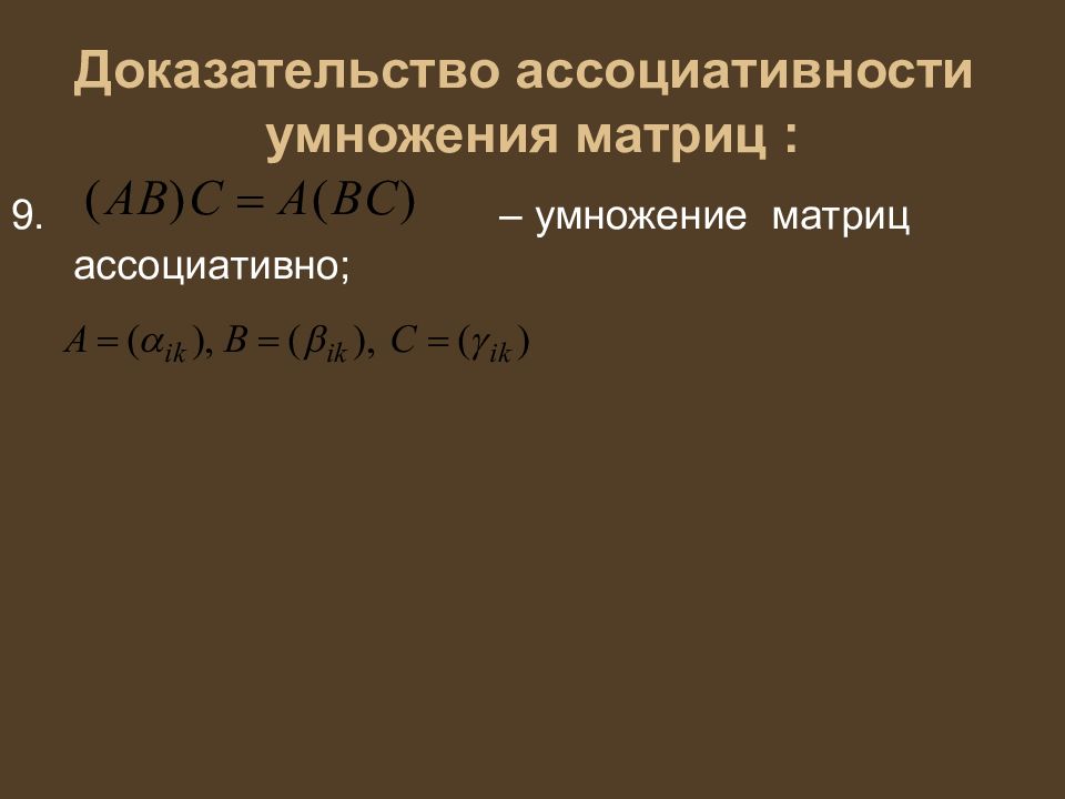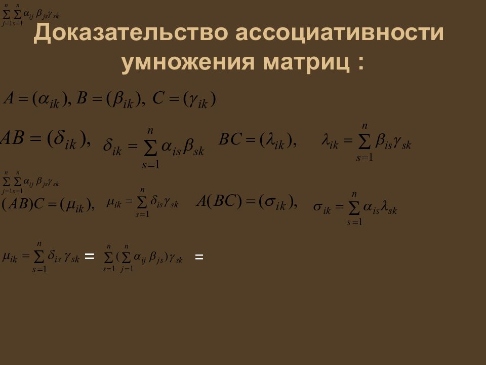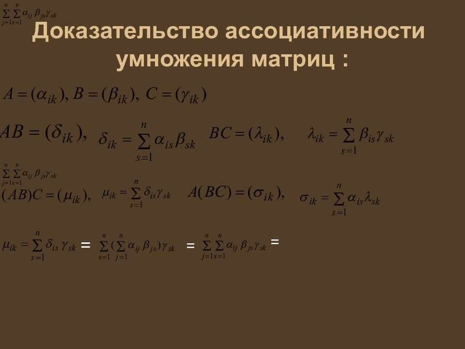 Слайд 22: Доказательство ассоциативности умножения матриц :