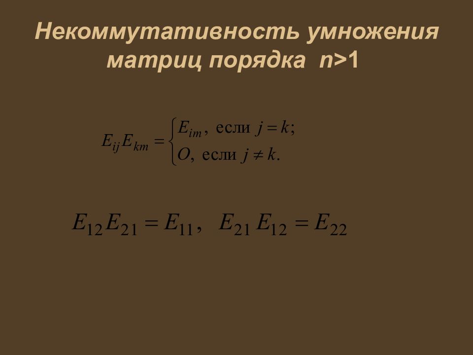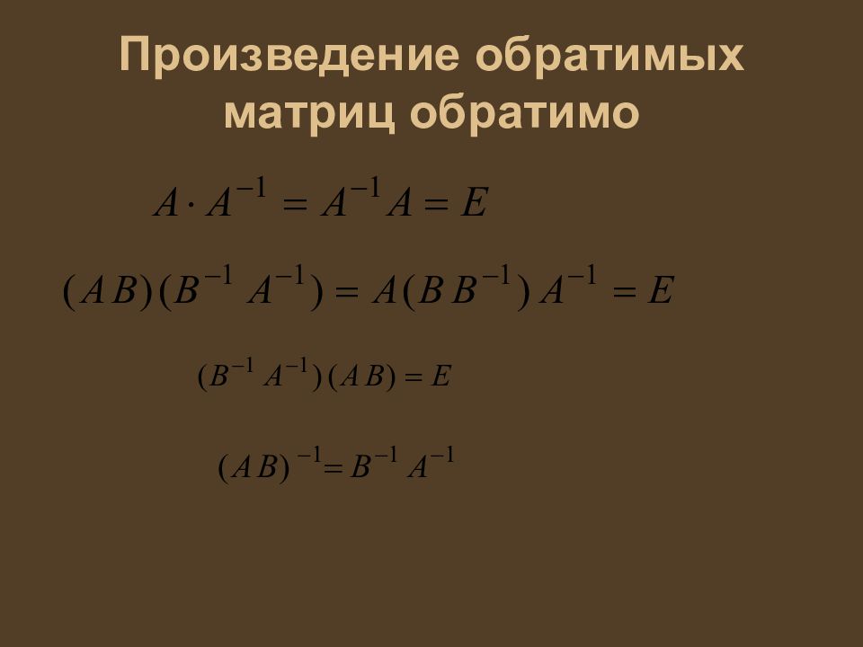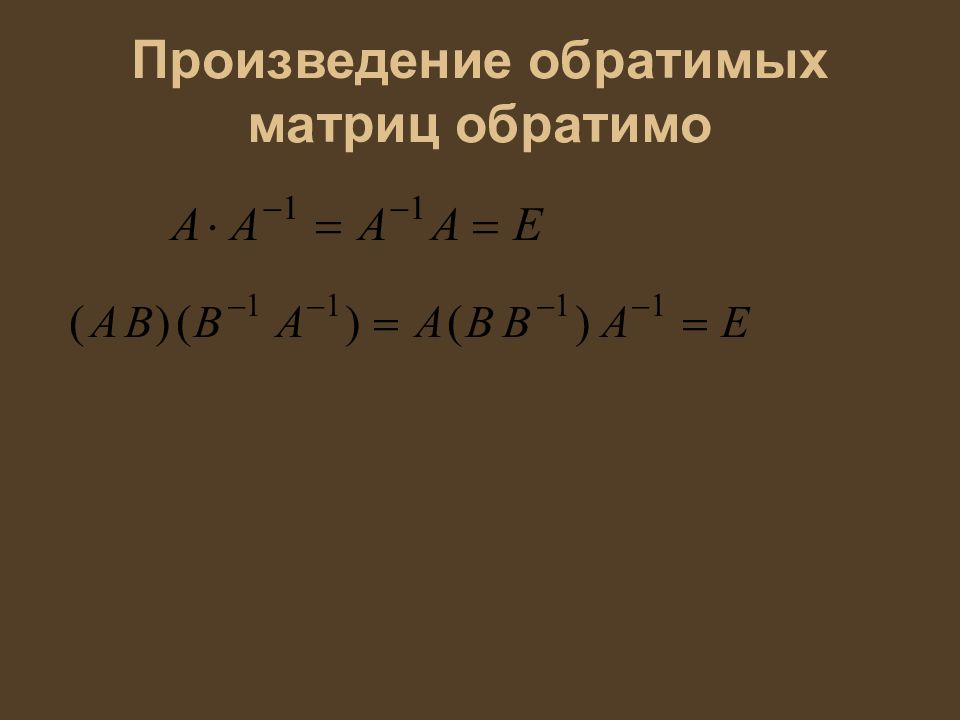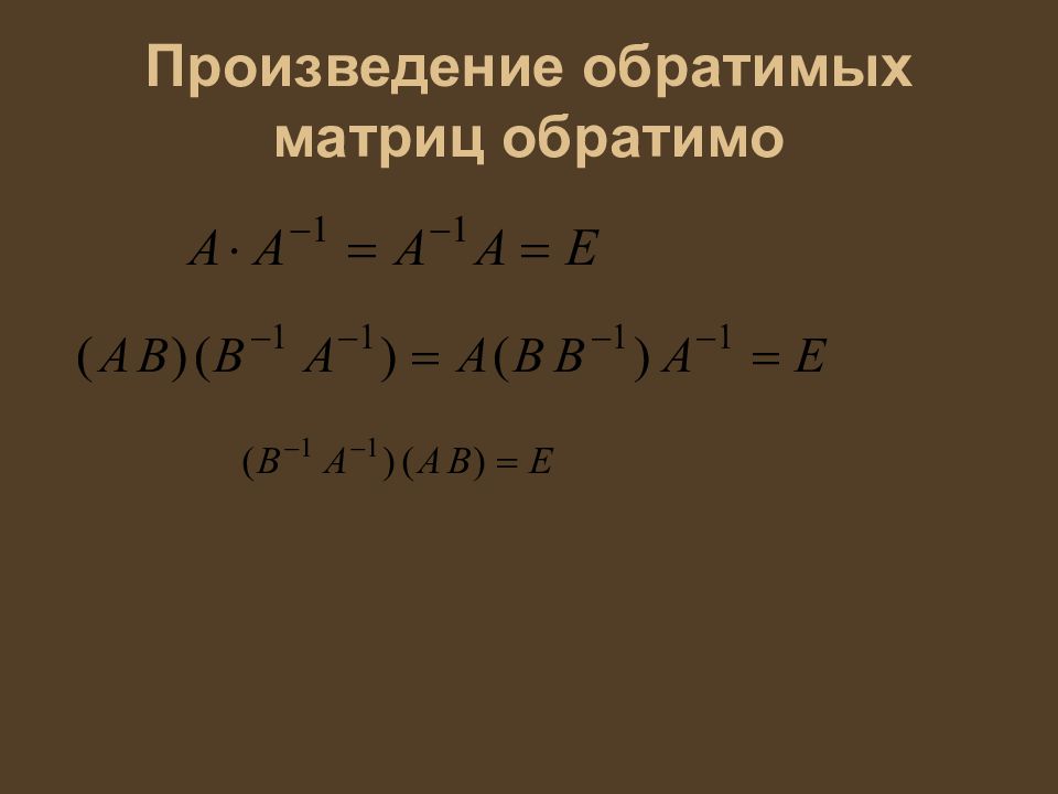– умножение матриц ассоциативно; – умножение матриц дистрибутивно относительно сложения;