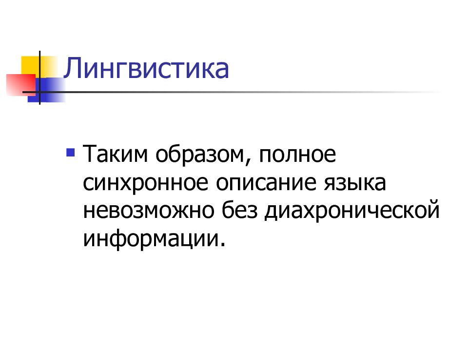 Таким образом, полное синхронное описание языка невозможно без диахронической информации.