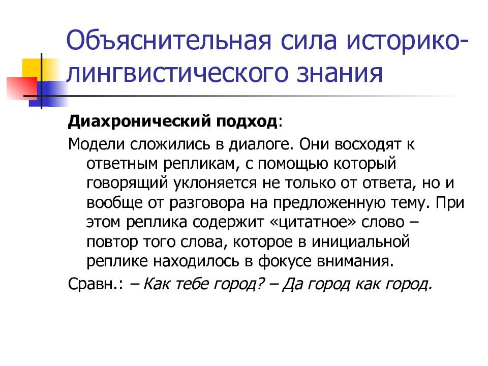 Слайд 29: Объяснительная сила историко-лингвистического знания