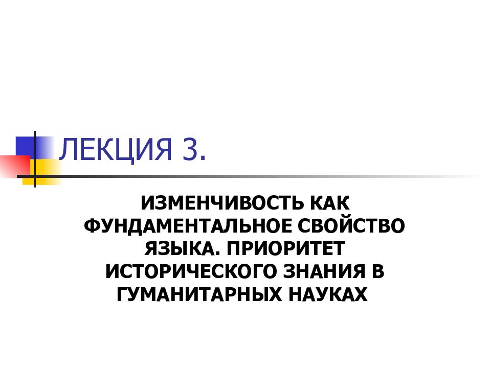 ИЗМЕНЧИВОСТЬ КАК ФУНДАМЕНТАЛЬНОЕ СВОЙСТВО ЯЗЫКА. ПРИОРИТЕТ ИСТОРИЧЕСКОГО ЗНАНИЯ В ГУМАНИТАРНЫХ НАУКАХ