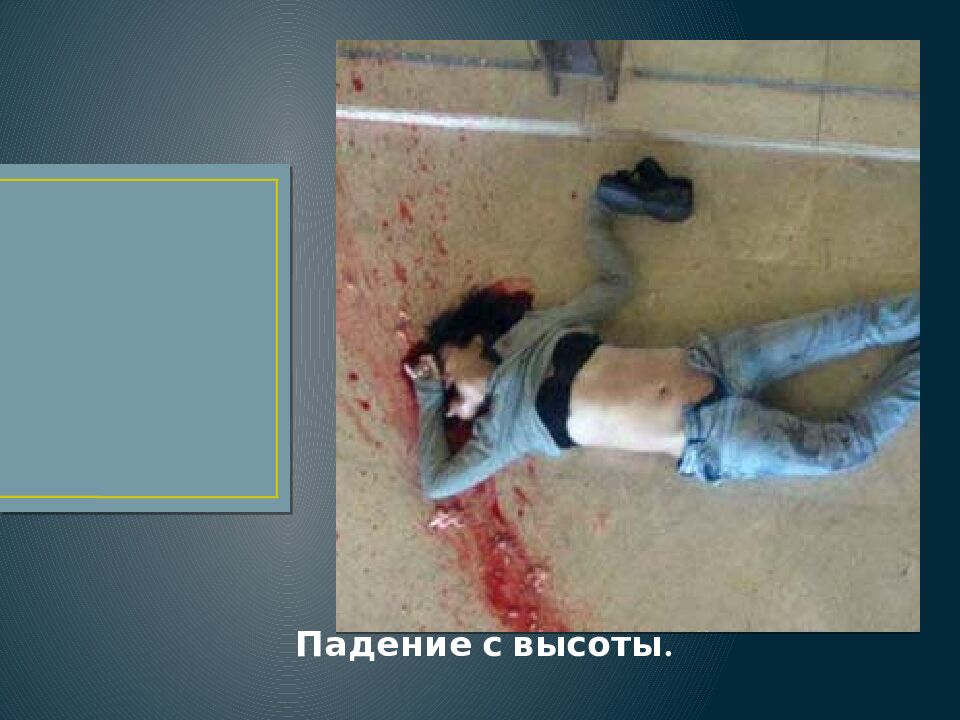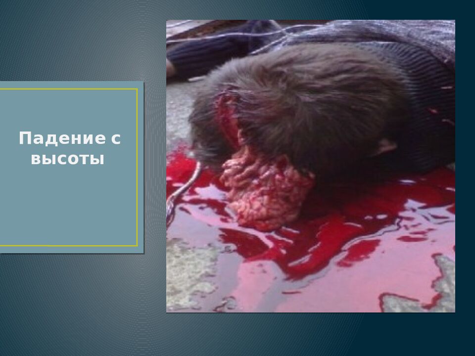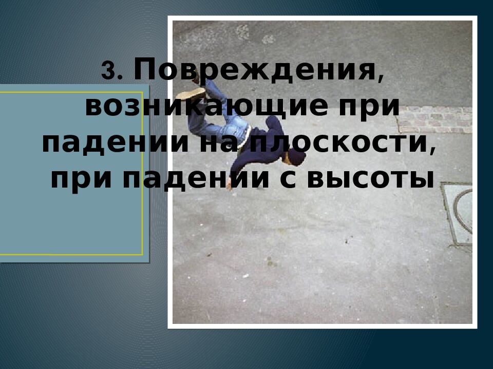 Слайд 40: 3. Повреждения, возникающие при падении на плоскости, при падении с высоты