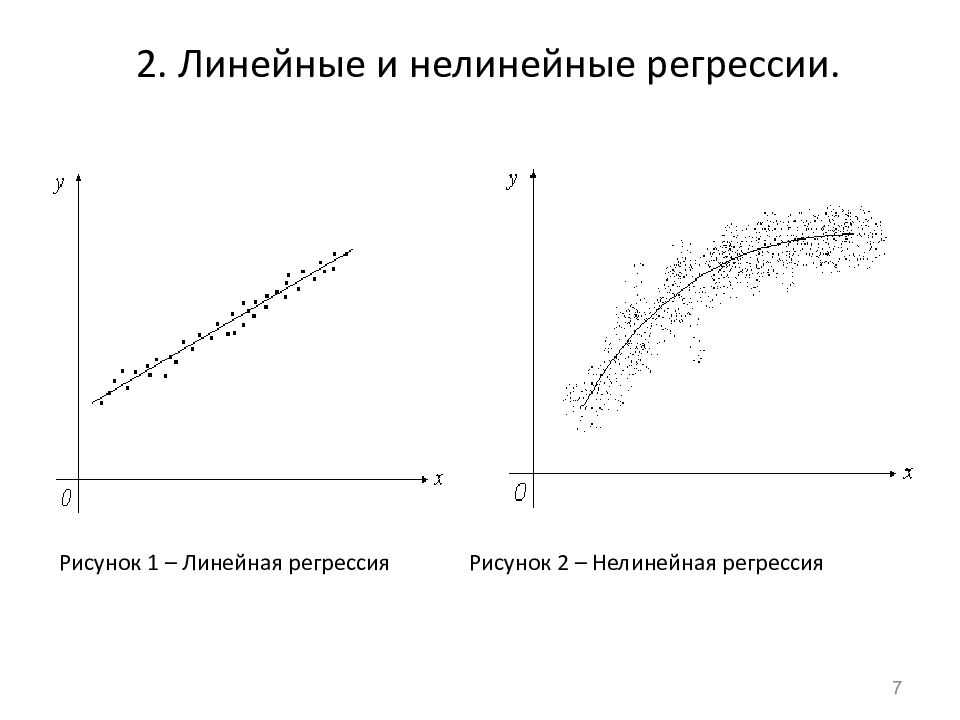 Слайд 7: 2. Линейные и нелинейные регрессии