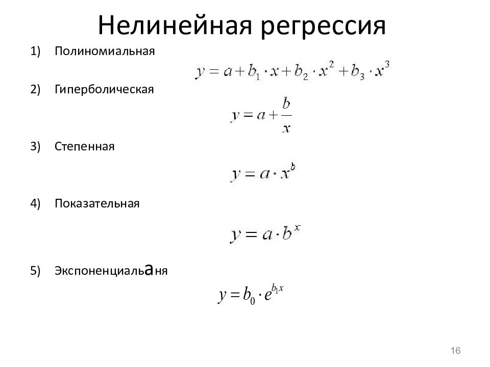 Полиномиальная Гиперболическая Степенная Показательная Экспоненциаль а ня 16
