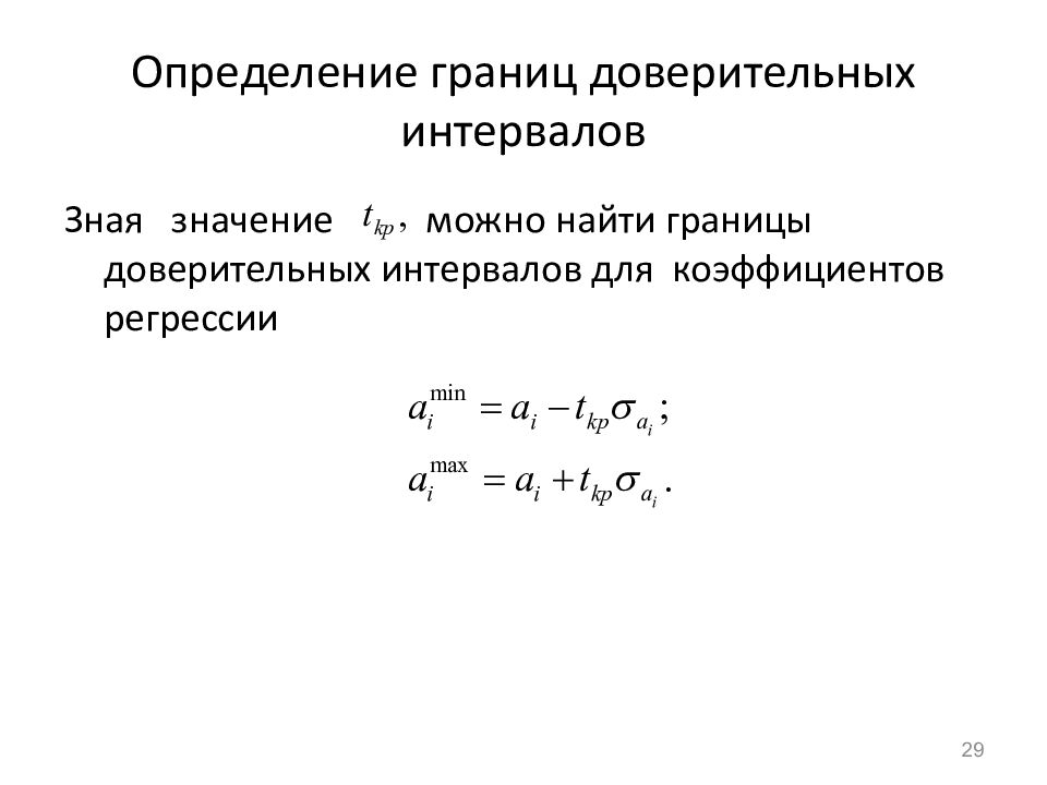 Зная значение можно найти границы доверительных интервалов для коэффициентов регрессии 29