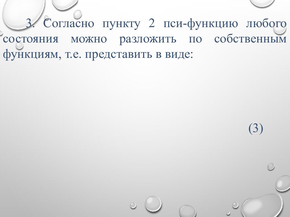3. Согласно пункту 2 пси-функцию любого состояния можно разложить по собственным функциям, т.е. представить в виде: (3)