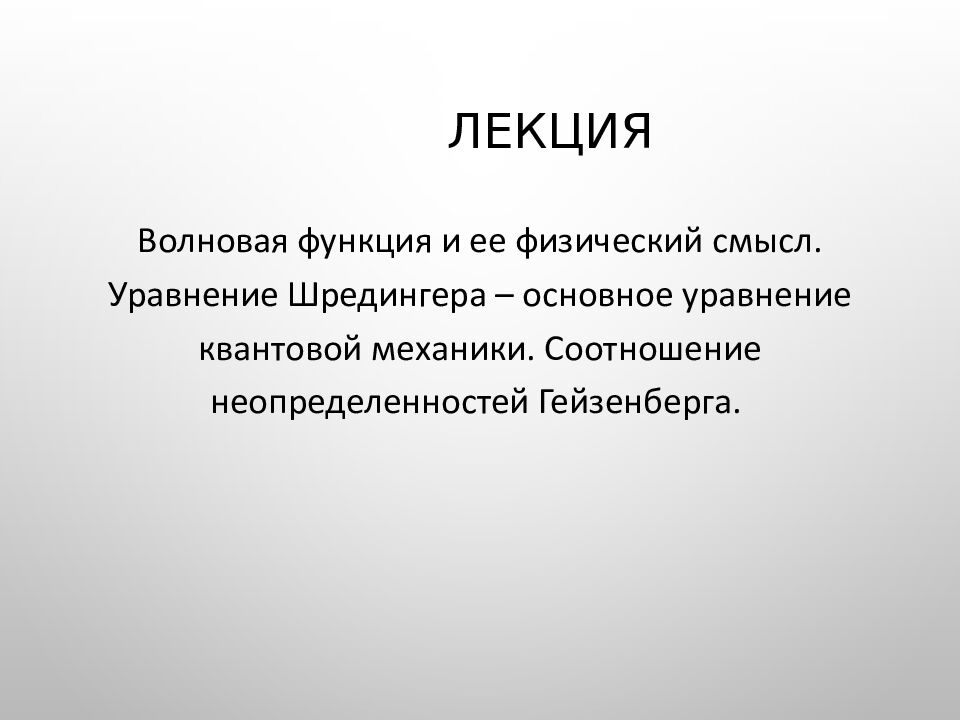 Волновая функция и ее физический смысл. Уравнение Шредингера – основное уравнение квантовой механики. Соотношение неопределенностей Гейзенберга.