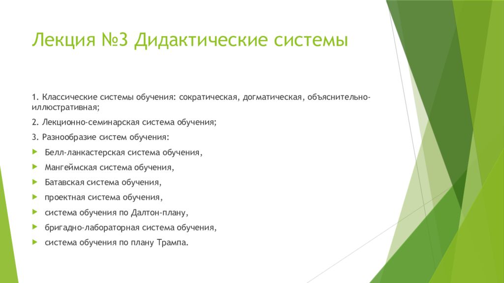 Последний слайд презентации: Лекция №3 Дидактические системы: Система обучения по плану Трампа