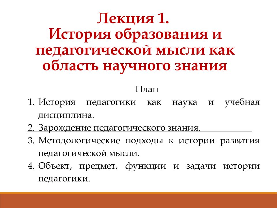 Первый слайд презентации: Лекция 1. История образования и педагогической мысли как область научного знания