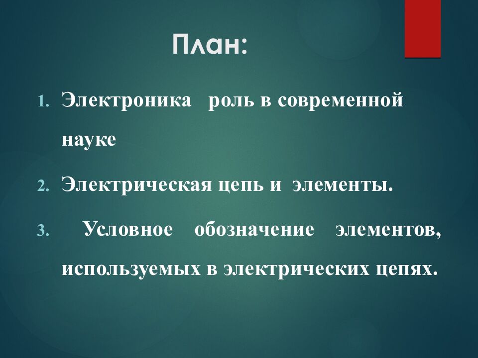 Электроника роль в современной науке Электрическая цепь и элементы. Условное обозначение элементов, используемых в электрических цепях.