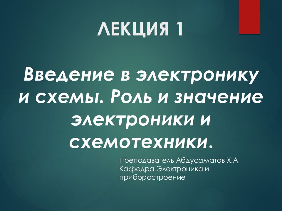 Первый слайд презентации: ЛЕКЦИЯ 1 Введение в электронику и схемы. Роль и значение электроники и схемотехники