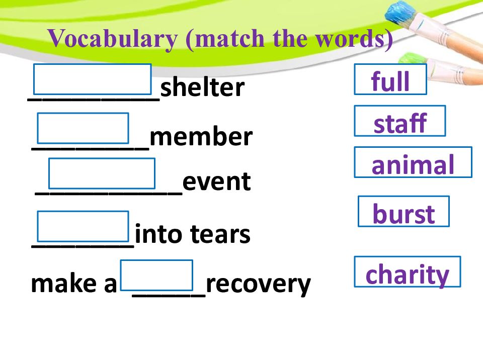 _________shelter ________member __________event _______into tears make a _____recovery full staff burst charity animal