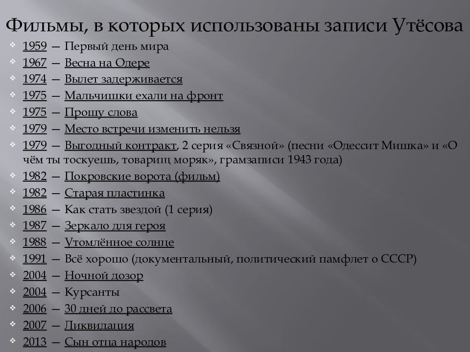 Слайд 9: Фильмы, в которых использованы записи Утёсова