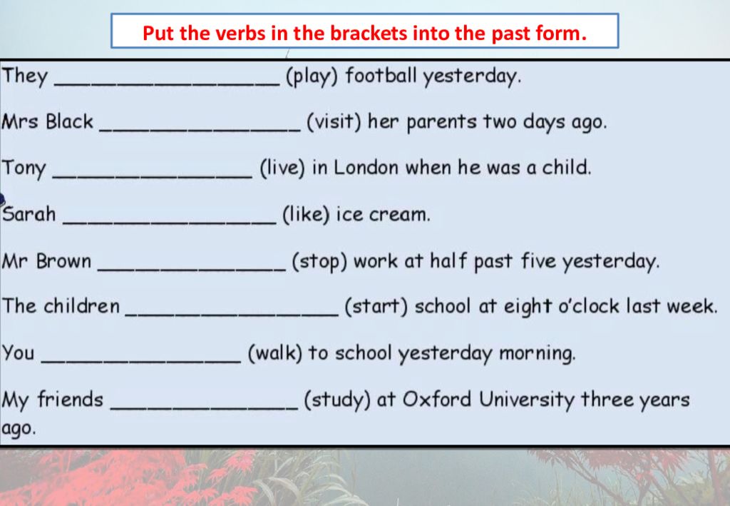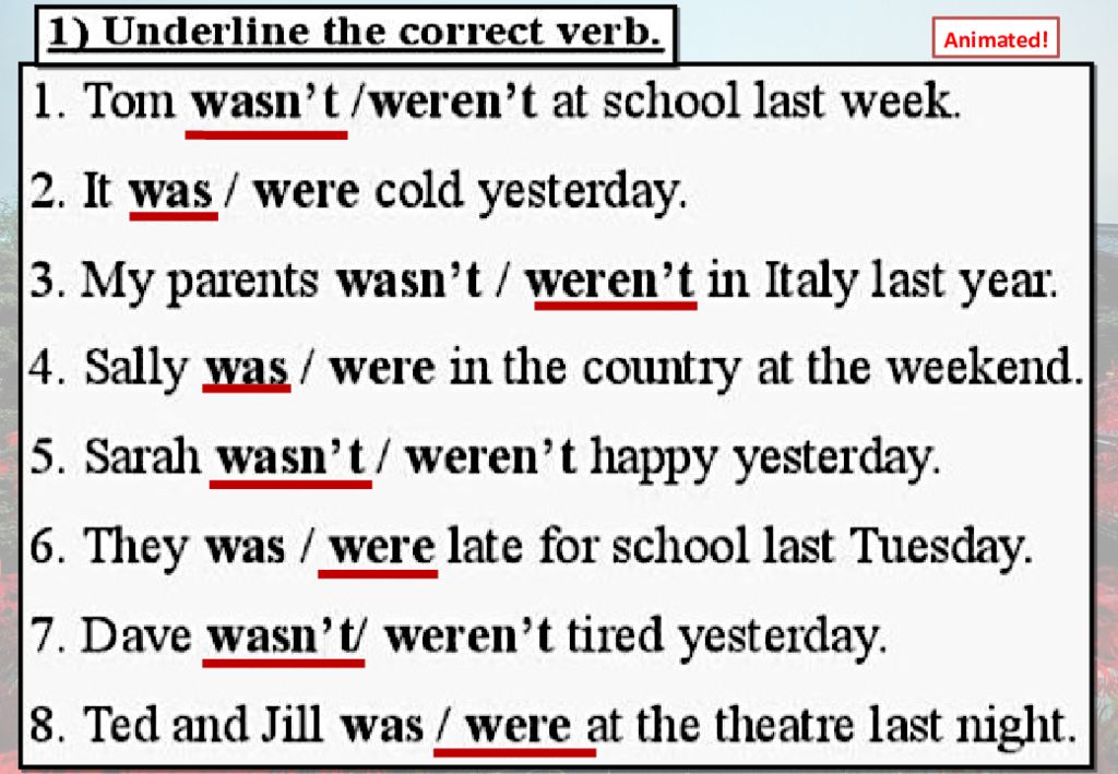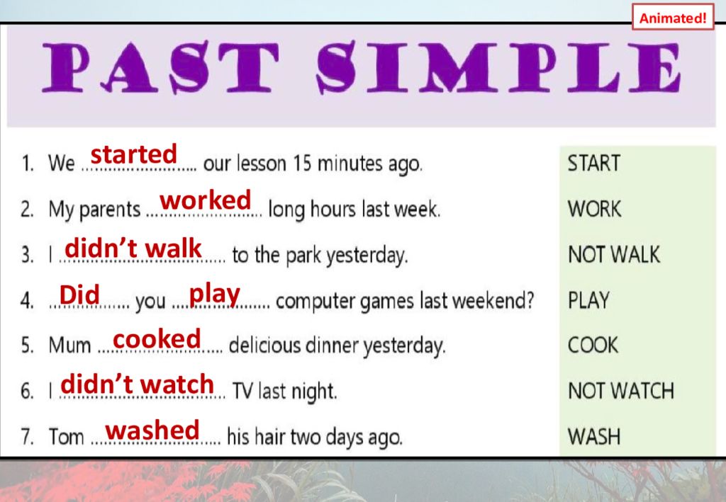 Animated! started worked didn’t walk Did play cooked didn’t watch washed