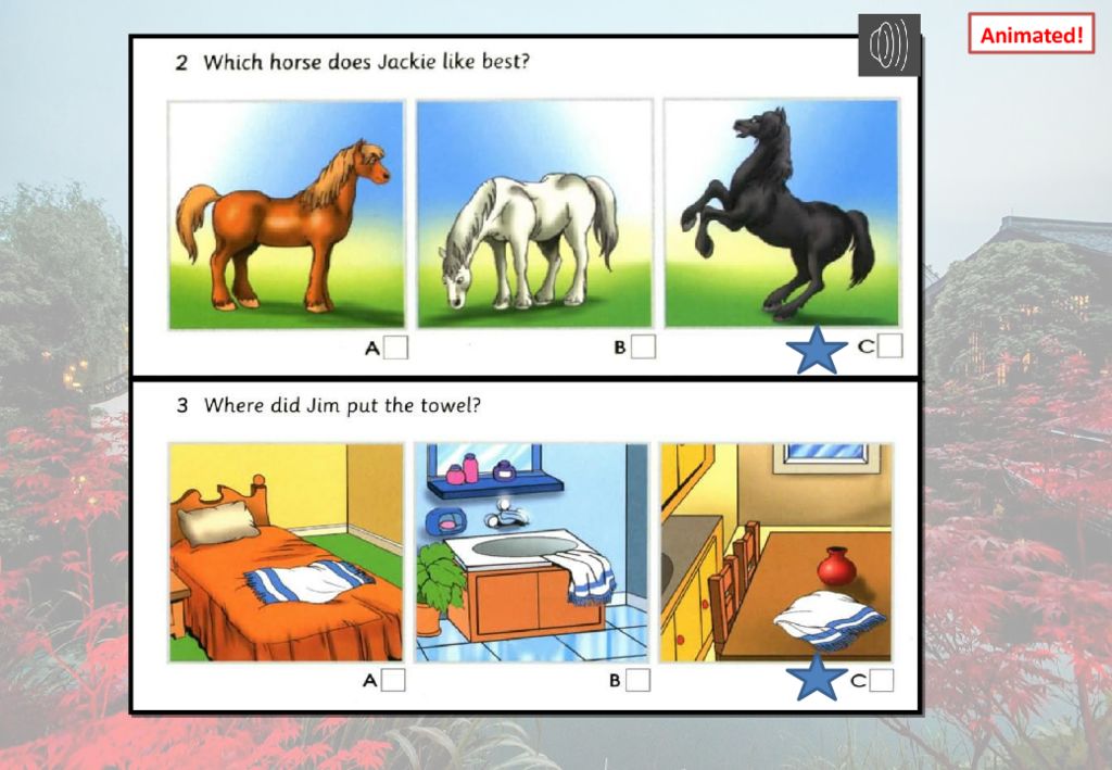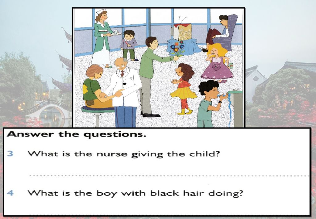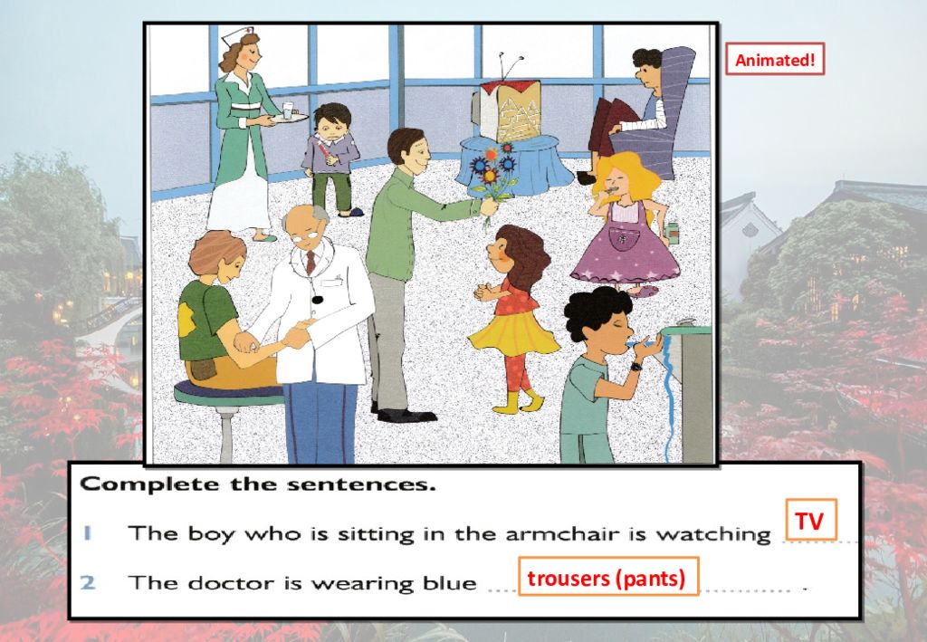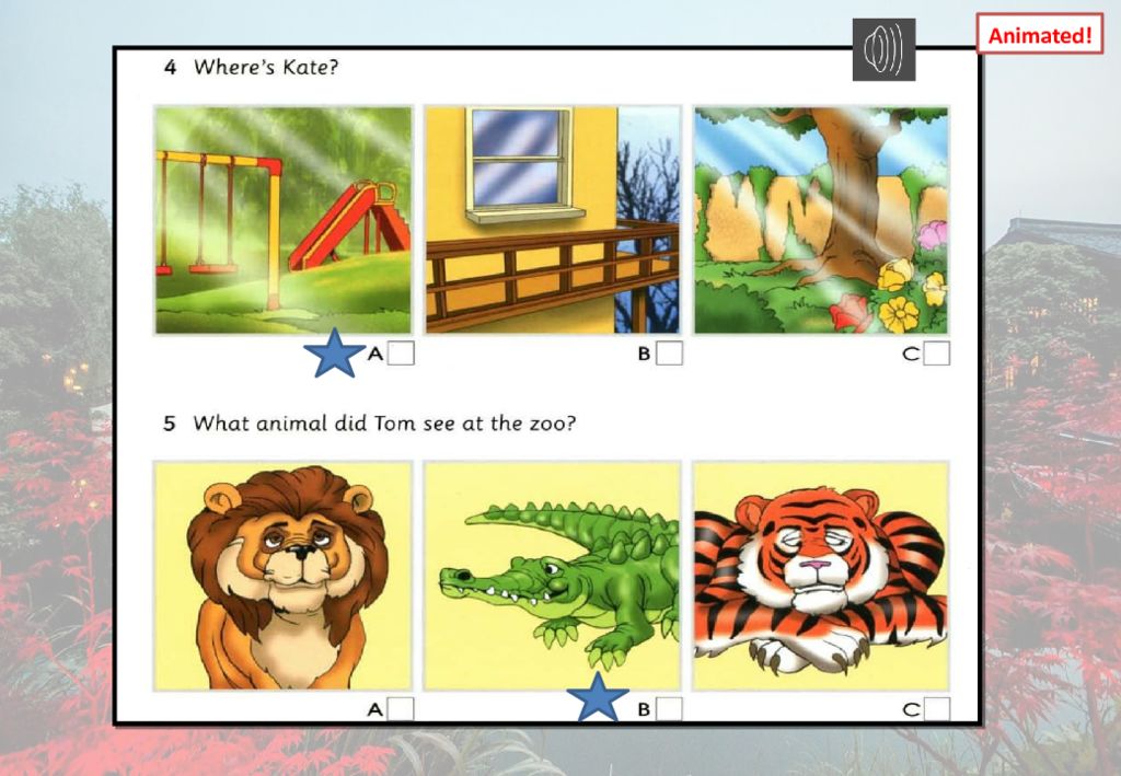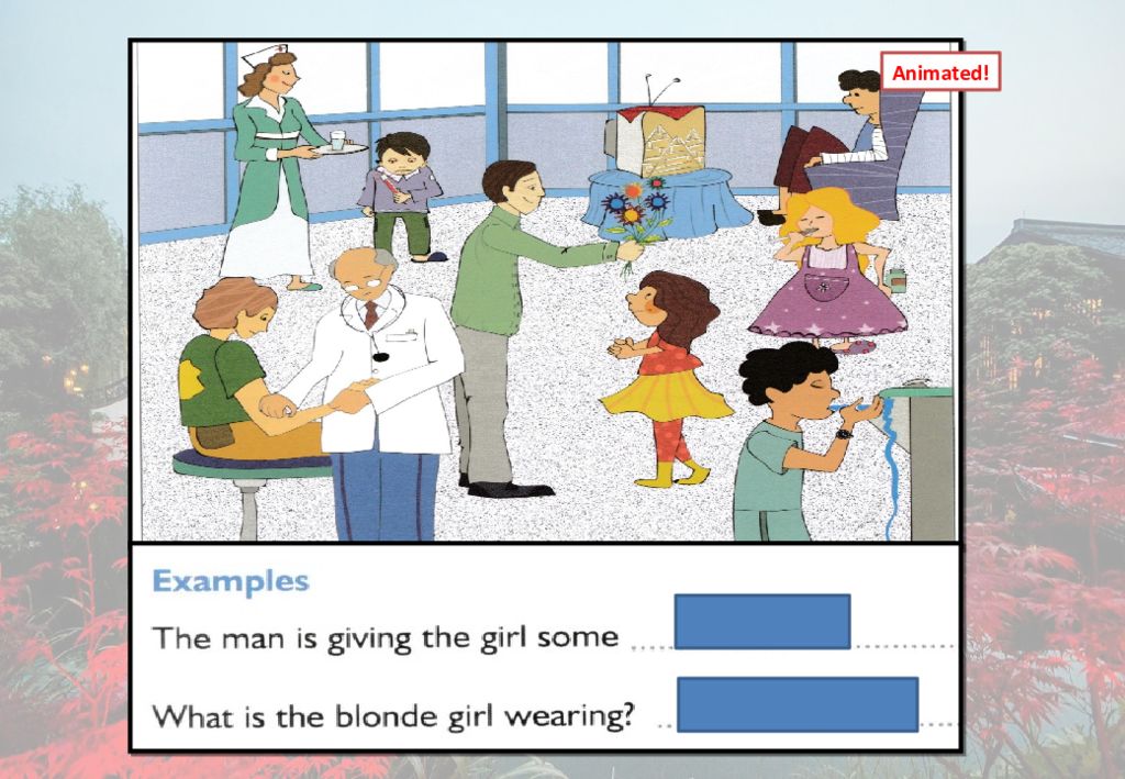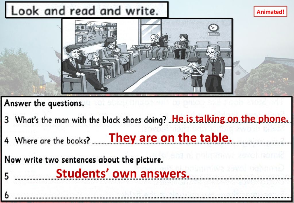 Animated! He is talking on the phone. They are on the table. Students’ own answers.
