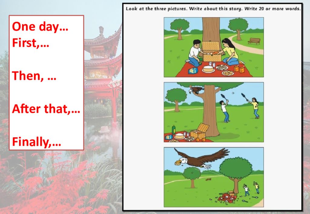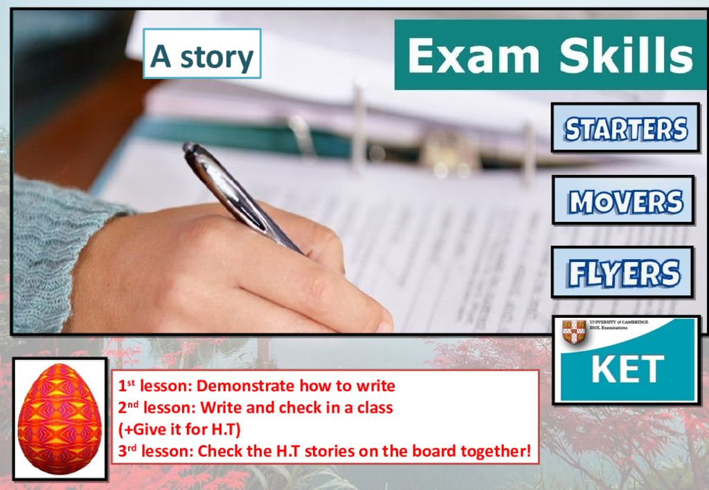 A story 1 st lesson: Demonstrate how to write 2 nd lesson: Write and check in a class (+Give it for H.T) 3 rd lesson: Check the H.T stories on the board together!