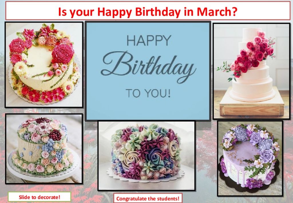 Is your Happy Birthday in March? Congratulate the students! Slide to decorate!