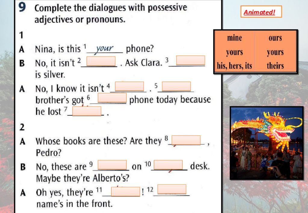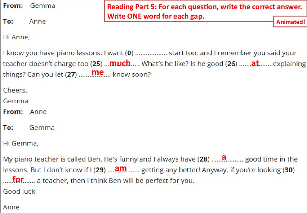 Reading Part 5: For each question, write the correct answer. Write ONE word for each gap. Animated! much at me a am for