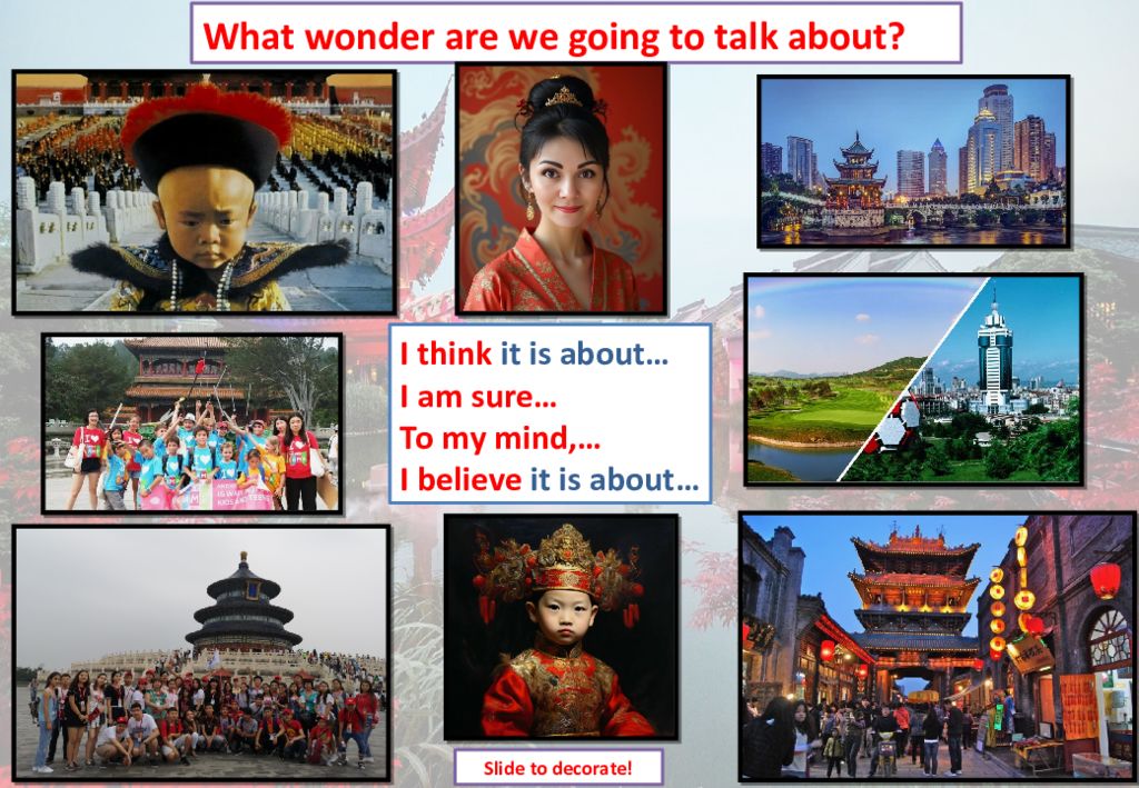 What wonder are we going to talk about? I think it is about… I am sure… To my mind,… I believe it is about… Slide to decorate!