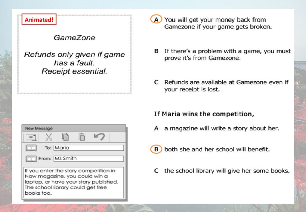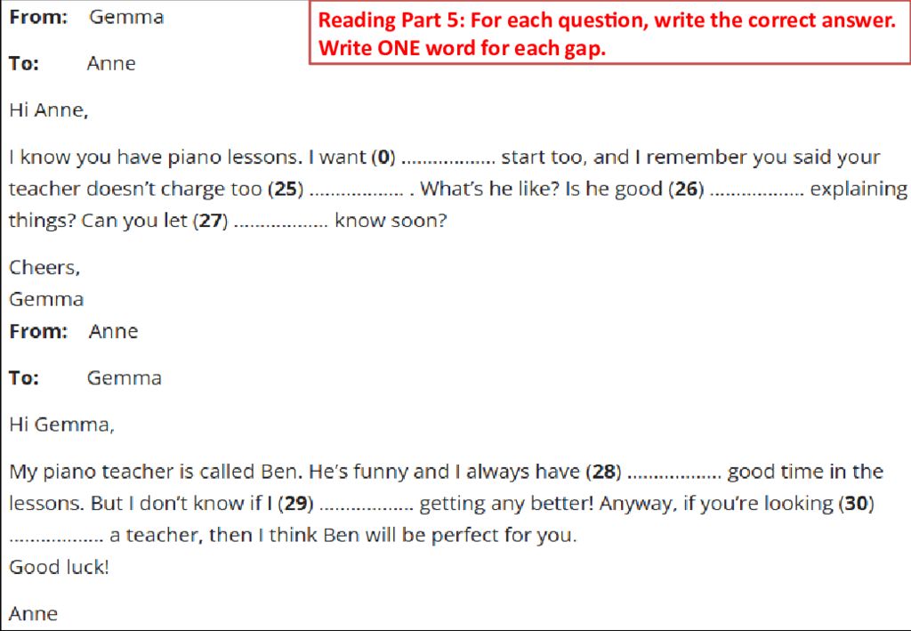 Reading Part 5: For each question, write the correct answer. Write ONE word for each gap.
