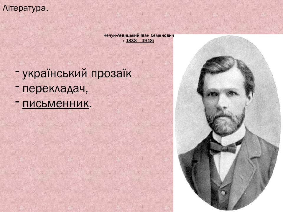 Слайд 9: Нечуй-Левицький Іван Семенович ( 1838 – 1918)