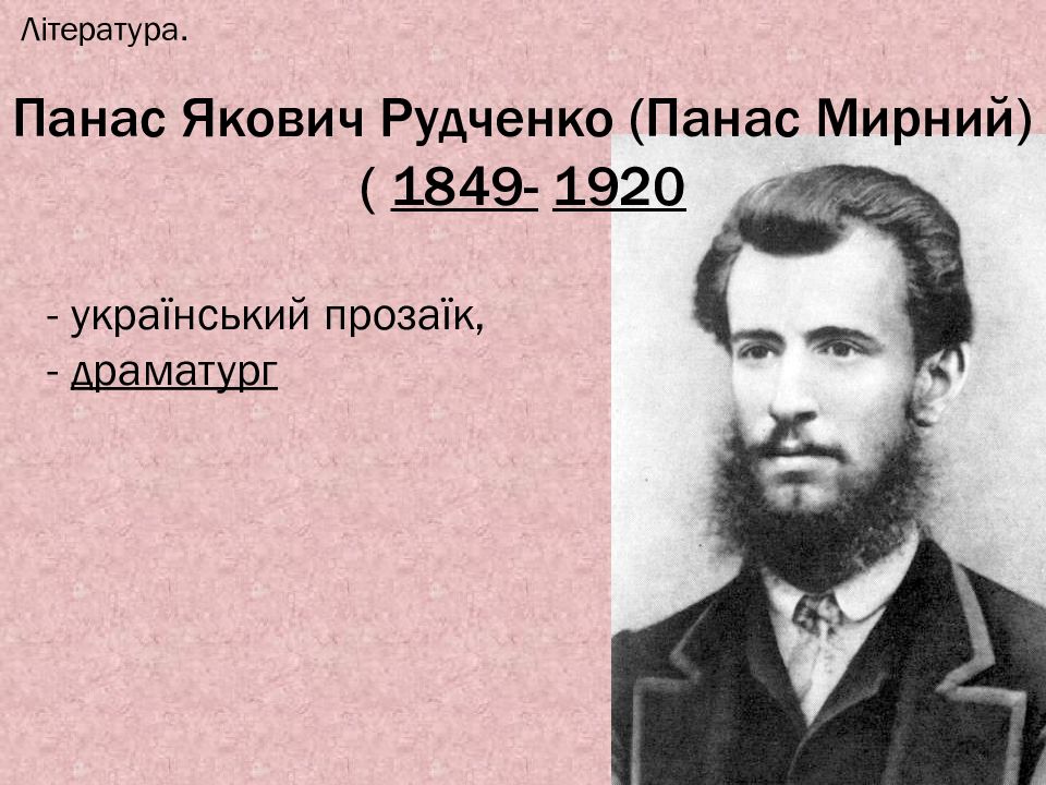 Слайд 11: Панас Якович Рудченко ( Панас Мирний ) ( 1849- 1920
