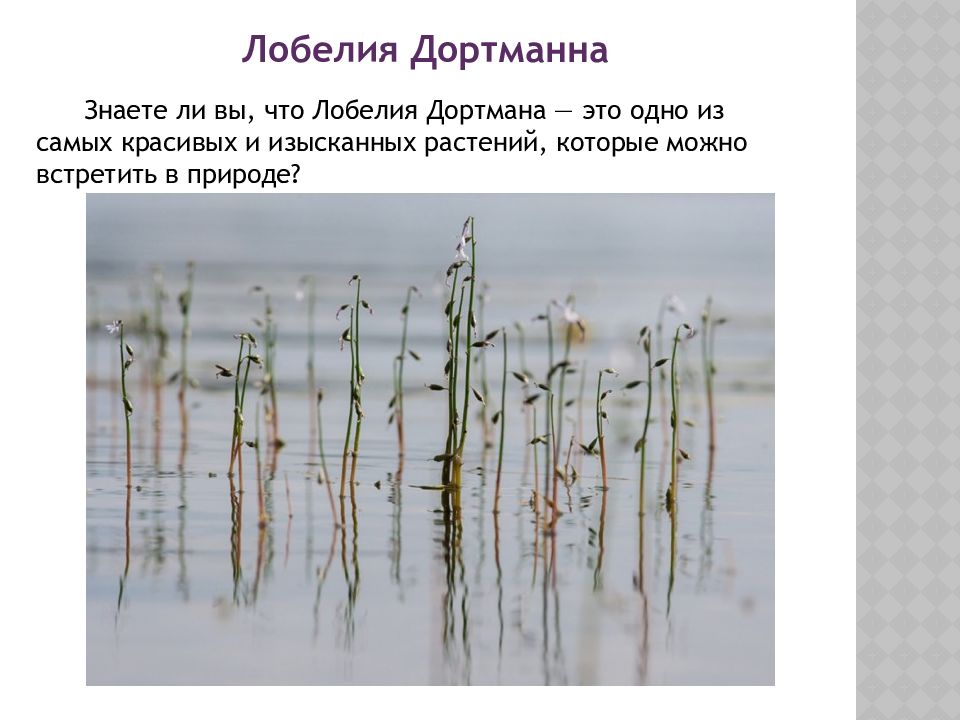 Последний слайд презентации: Лобелия Дортманна Знаете ли вы, что Лобелия Дортмана — это одно из самых