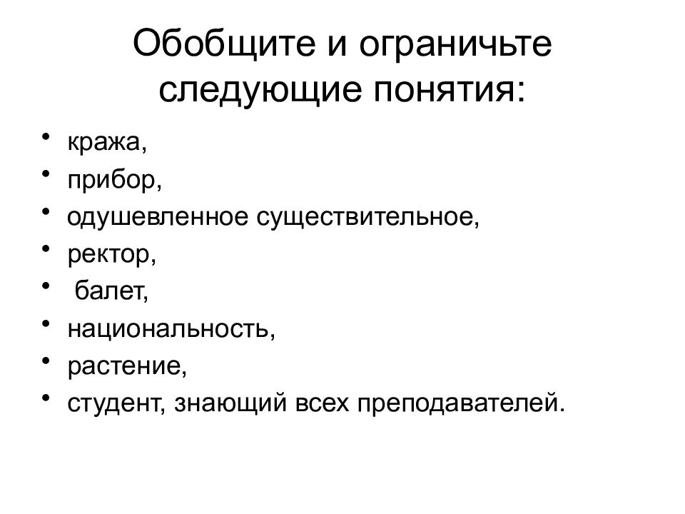 Слайд 16: Обобщите и ограничьте следующие понятия: