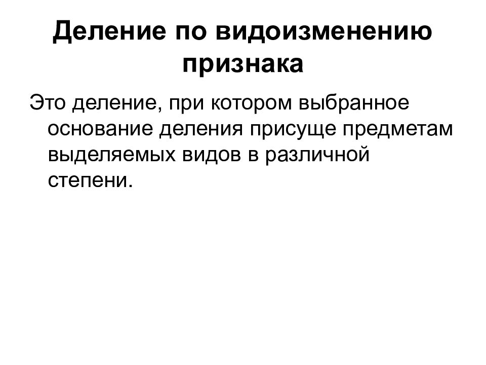 Это деление, при котором выбранное основание деления присуще предметам выделяемых видов в различной степени.