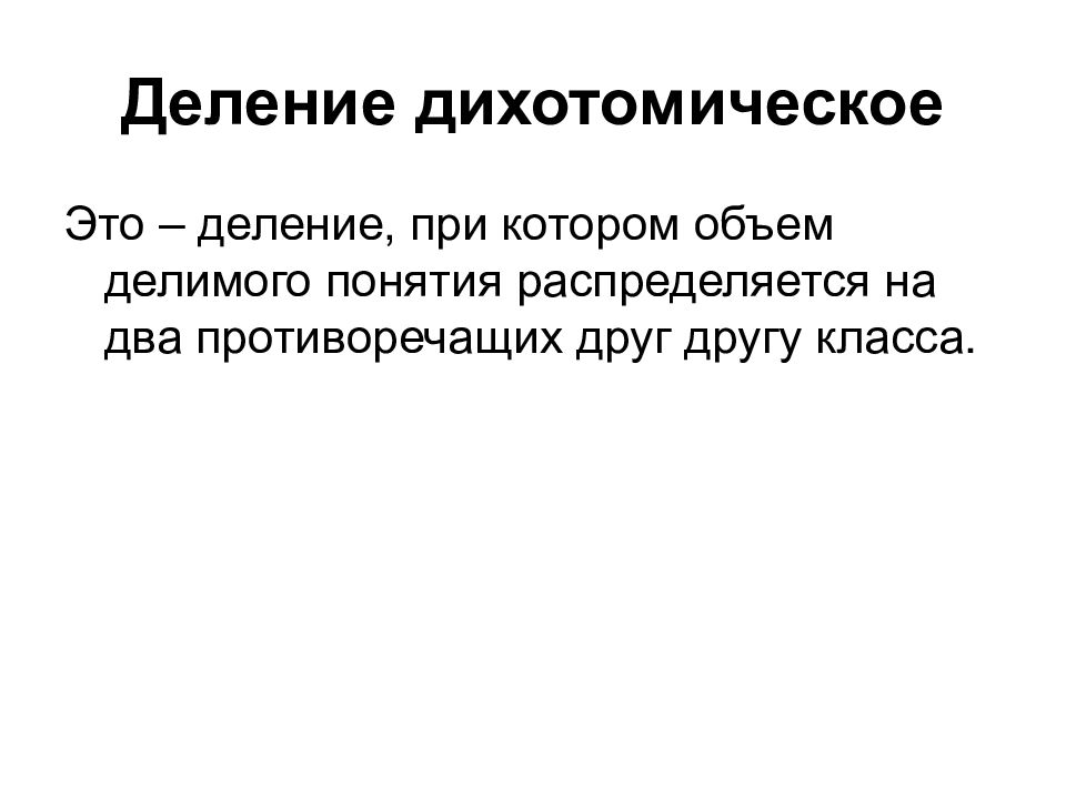 Это – деление, при котором объем делимого понятия распределяется на два противоречащих друг другу класса.