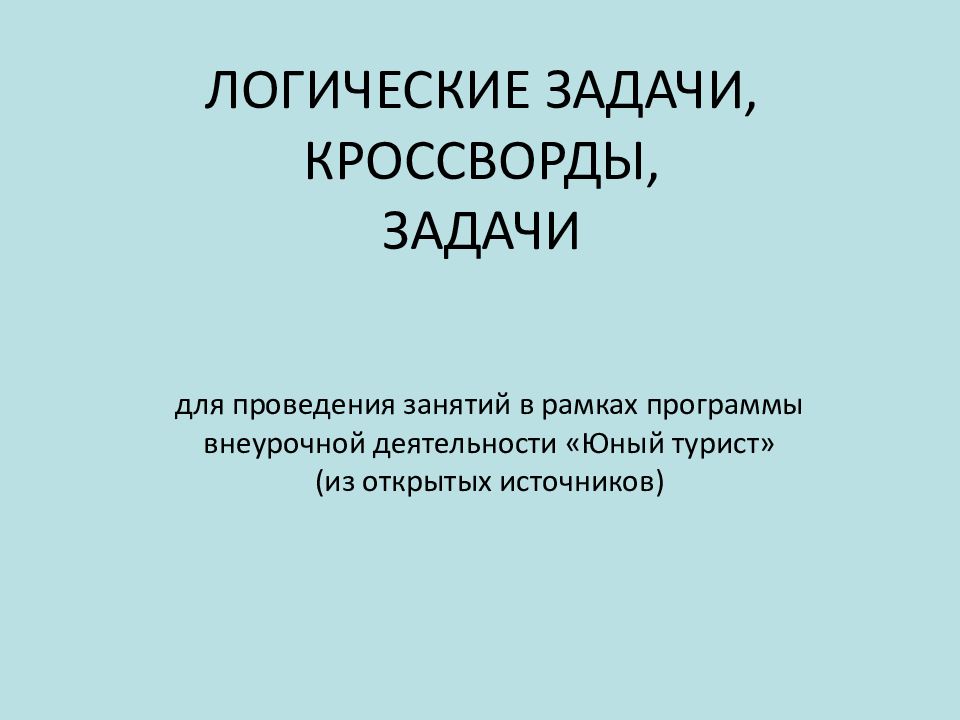Первый слайд презентации: ЛОГИЧЕСКИЕ ЗАДАЧИ, КРОССВОРДЫ, ЗАДАЧИ