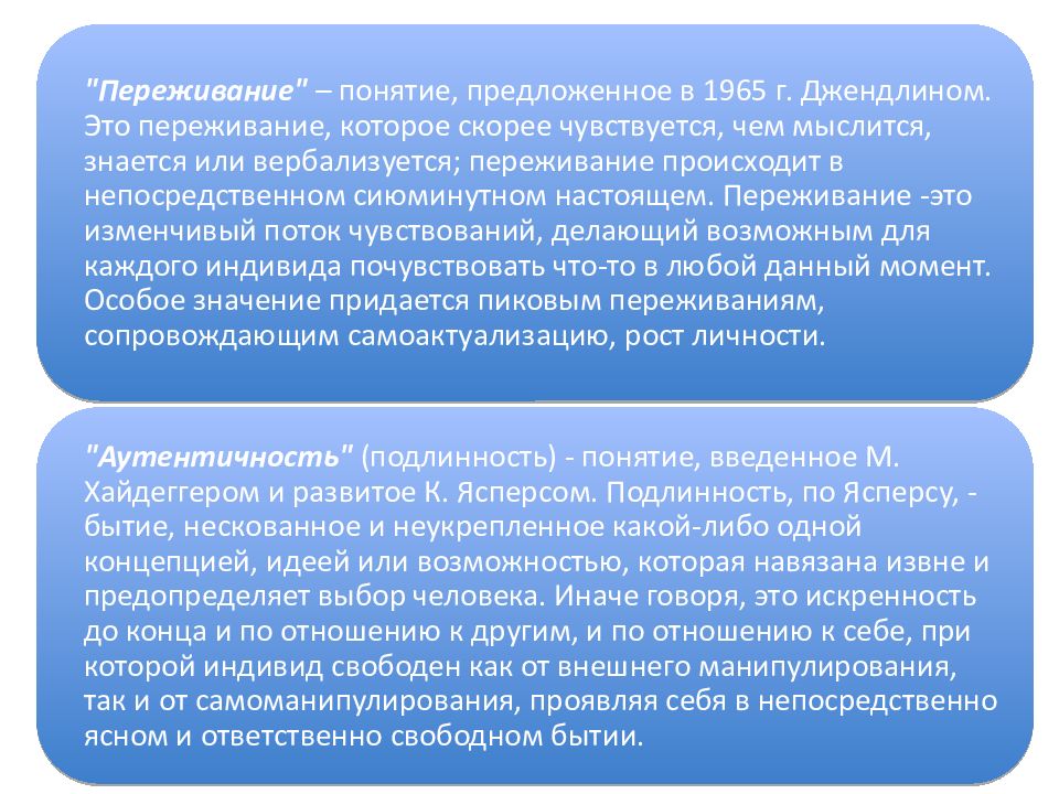 В клиентах поощряется открытость, спонтанная активность и сосредоточенность на основных проблемах жизни рождение, любовь, тревога, судьба, вина, смерть, ответственность, т е на экзистенциальных проблемах, которые не имеют рационального решения, но конфронтация с которыми позволяет решать текущие психологические проблемы клиента