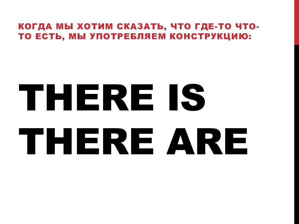 Когда мы хотим сказать, что где-то что-то есть, мы употребляем конструкцию :