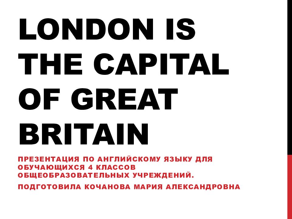 Презентация по английскому языку для обучающихся 4 классов общеобразовательных учреждений. Подготовила Кочанова Мария Александровна