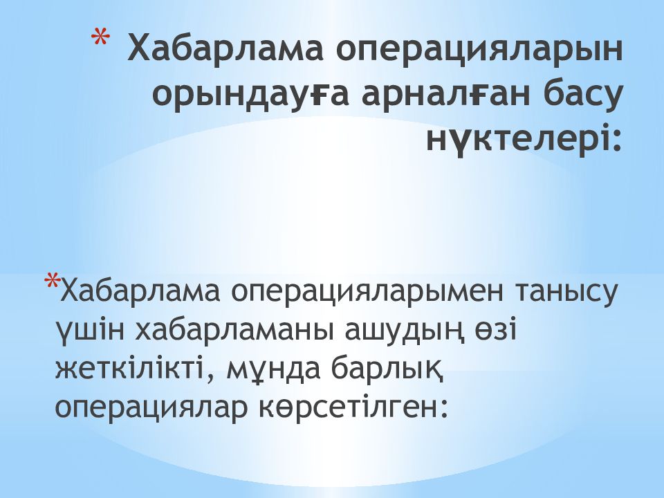 Слайд 6: Хабарлама операцияларын орындауға арналған басу нүктелері :