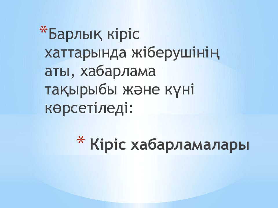 Барлық кіріс хаттарында жіберушінің аты, хабарлама тақырыбы және күні көрсетіледі :