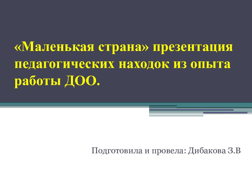 Первый слайд презентации: Маленькая страна» презентация педагогических находок из опыта работы ДОО