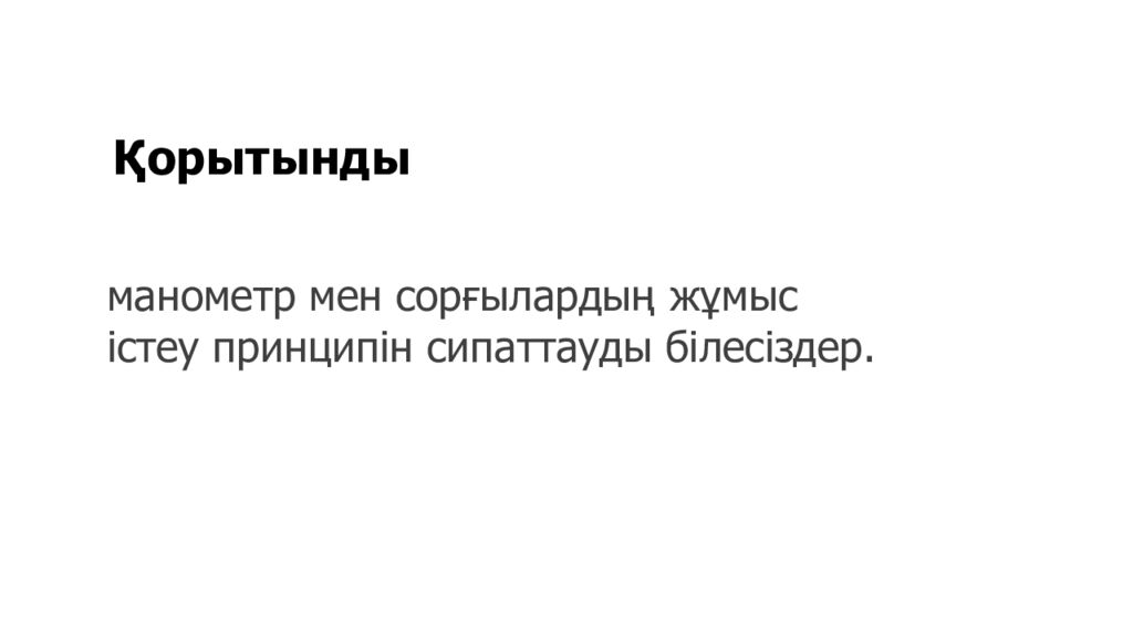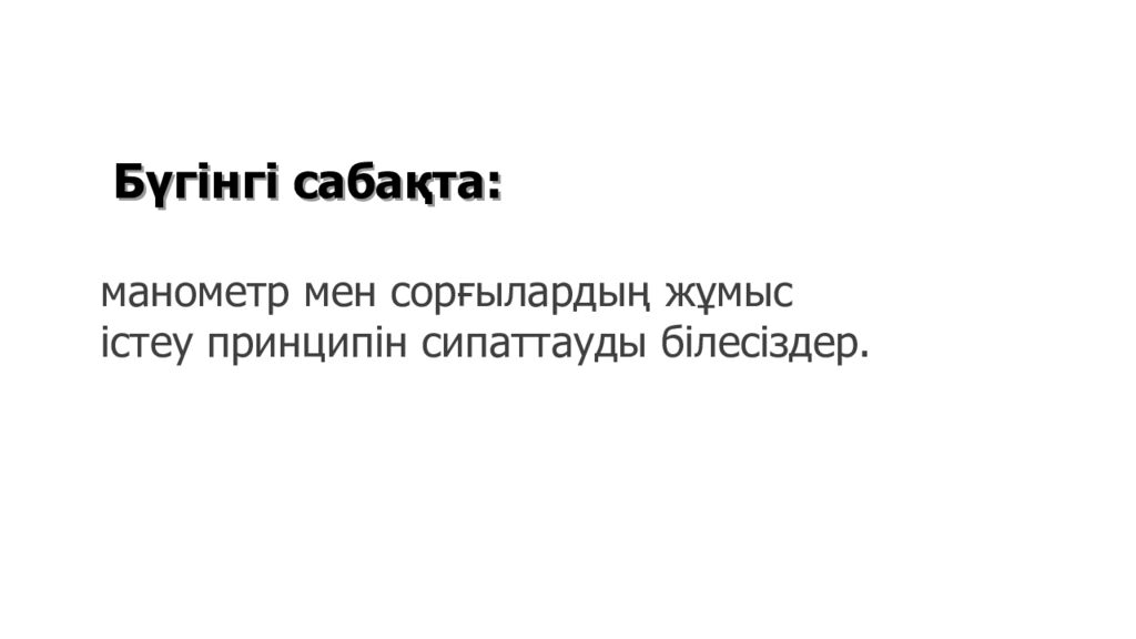 манометр мен сорғылардың жұмыс істеу принципін сипаттауды білесіздер. Бүгінгі сабақта: