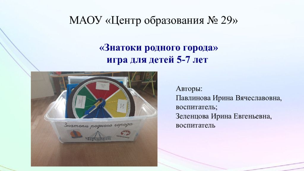 «Знатоки родного города» игра для детей 5-7 лет Авторы: Павлинова Ирина Вячеславовна, воспитатель; Зеленцова Ирина Евгеньевна, воспитатель
