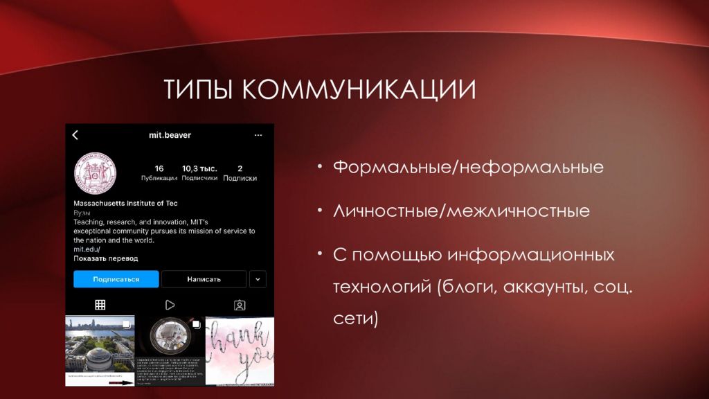 Слайд 12: Типы коммуникации