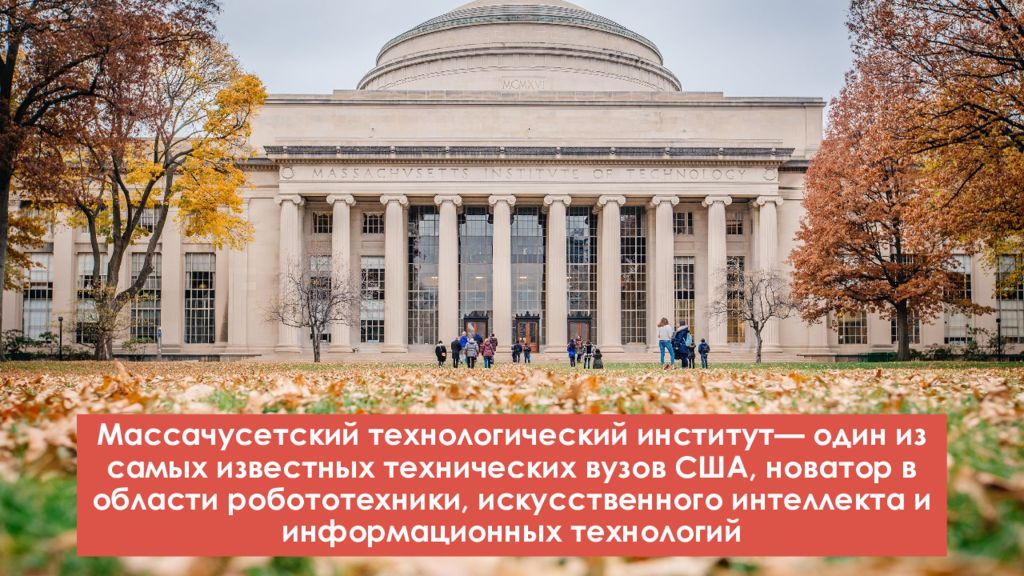 Массачусетский технологический институт— один из самых известных технических вузов США, новатор в области робототехники, искусственного интеллекта и информационных технологий