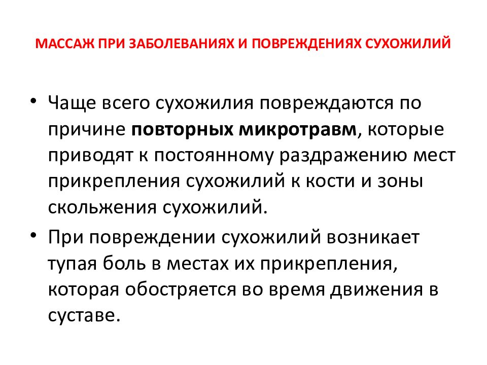 Слайд 24: МАССАЖ ПРИ ЗАБОЛЕВАНИЯХ И ПОВРЕЖДЕНИЯХ СУХОЖИЛИЙ
