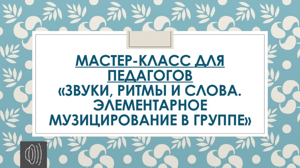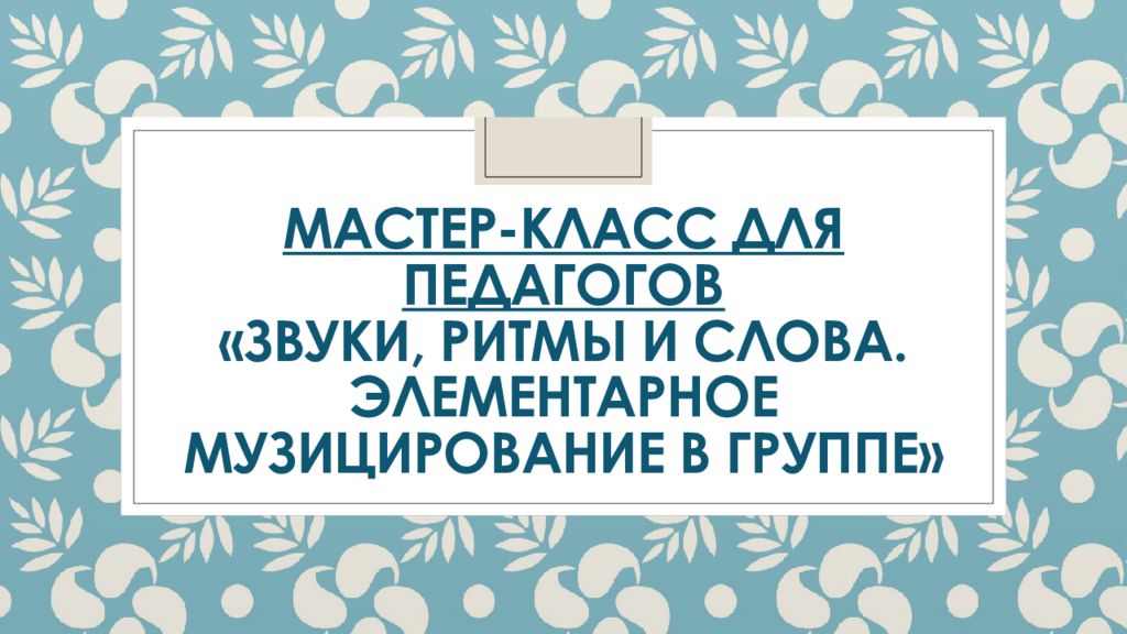 Первый слайд презентации: Мастер-класс для педагогов «Звуки, ритмы и слова. Элементарное музицирование в группе»