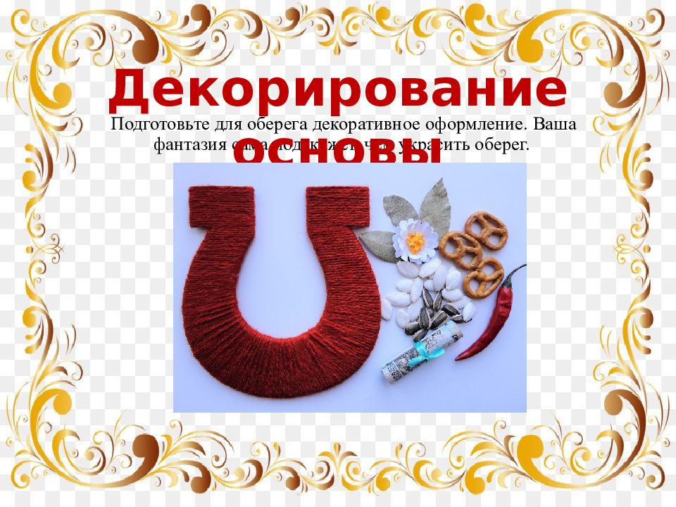 Подготовьте для оберега декоративное оформление. Ваша фантазия сама подскажет, чем украсить оберег. Д екорирование основы