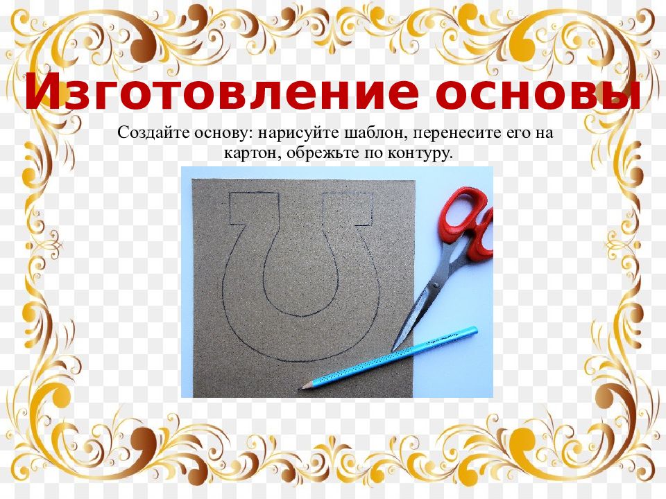 Создайте основу: нарисуйте шаблон, перенесите его на картон, обрежьте по контуру. И зготовление основы